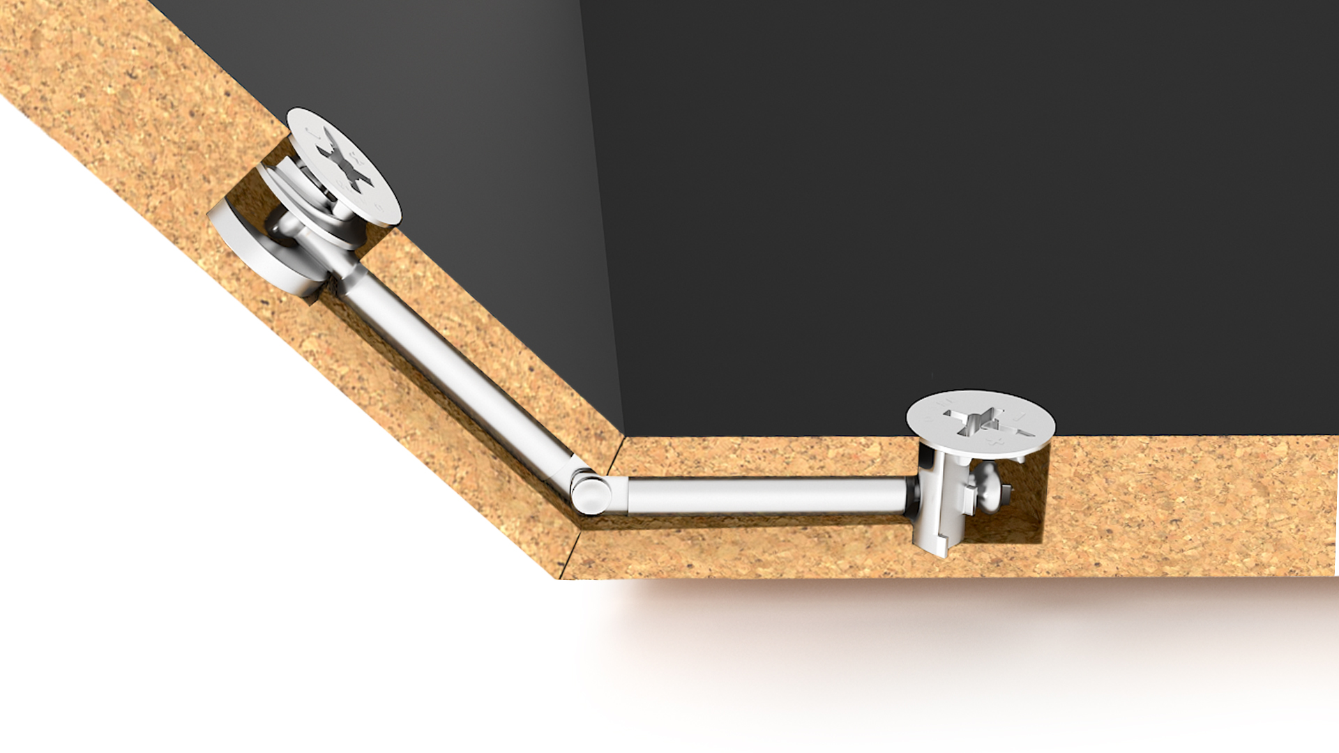 Высота эксцентрика требует отверстия под сверление 12 мм. Модель предназначена для угловой мебели широкого назначения, в том числе — барных стоек, ресепшн зон, домашних и офисных гарнитуров. ST01/55 обеспечит надёжное соединение панелей под любым углом в рамках заданного диапазона от 90 до 180°.