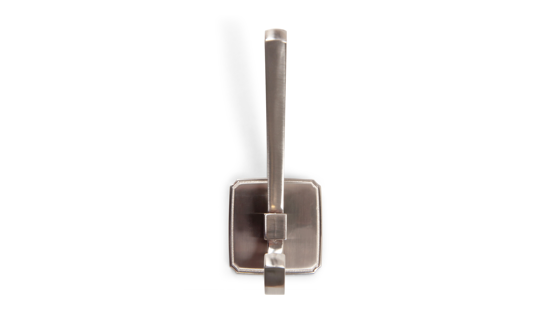 Модель оснащена скрытым монтажом: специальная планка под корпусом изделия, плотно крепится к мебели с помощью винта, а затем на неё надевается крючок, без каких-либо следов установки.