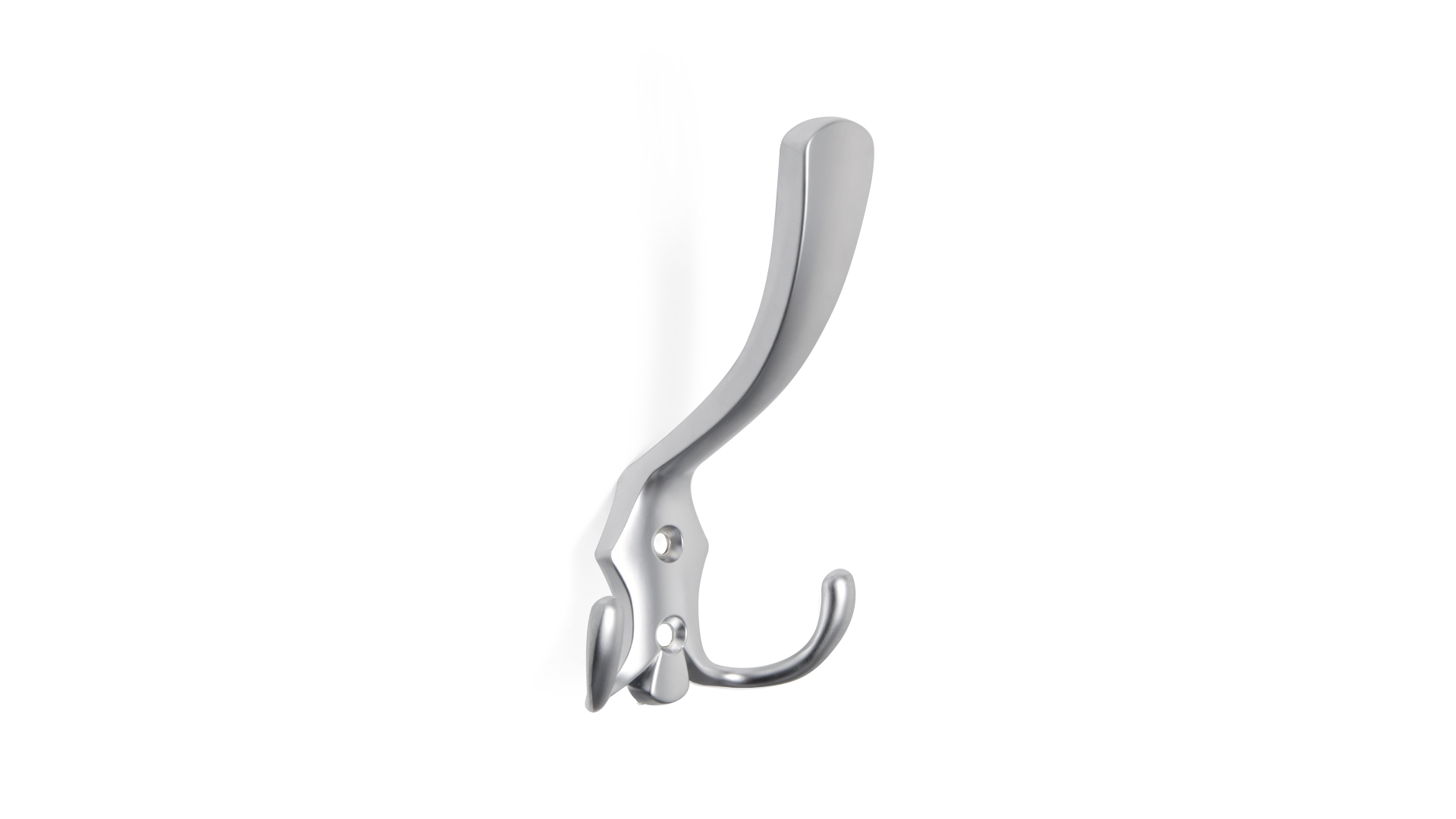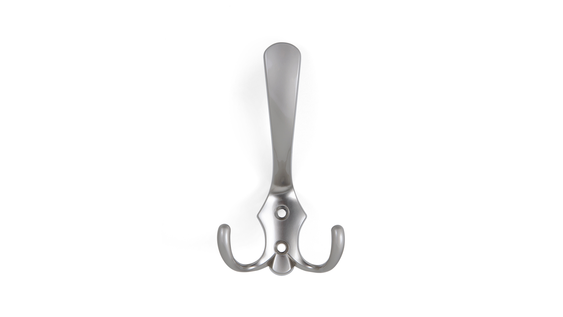 Трёхрожковый крючок K302 — функциональная модель универсального дизайна, подходящего практически ко всем интерьерным стилям. Расширенная форма верхнего рожка и обтекаемые края нижних способствуют более удобному навешиванию и удержанию вещей. K302 будет уместен в разных помещениях — в гардеробной и спальной, на кухне и в ванной, а также в офисных помещениях.