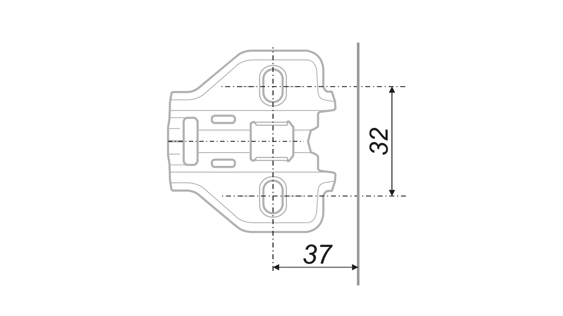 Н3012 – это базовая трапециевидная планка без эксцентрика, созданная специально для петель линейки NEO. Массивная форма планки обеспечивает более жесткое крепление петли к боковой стенке. Для крепежа можно использовать как евровинты, так и саморезы, которые приобретаются отдельно. Положение фасада по высоте можно отрегулировать изменением положения планки: если она установлена с помощью евровинтов, регулировка возможна в диапазоне +/-2 мм, а с помощью саморезов – в диапазоне +/-2,5 мм.