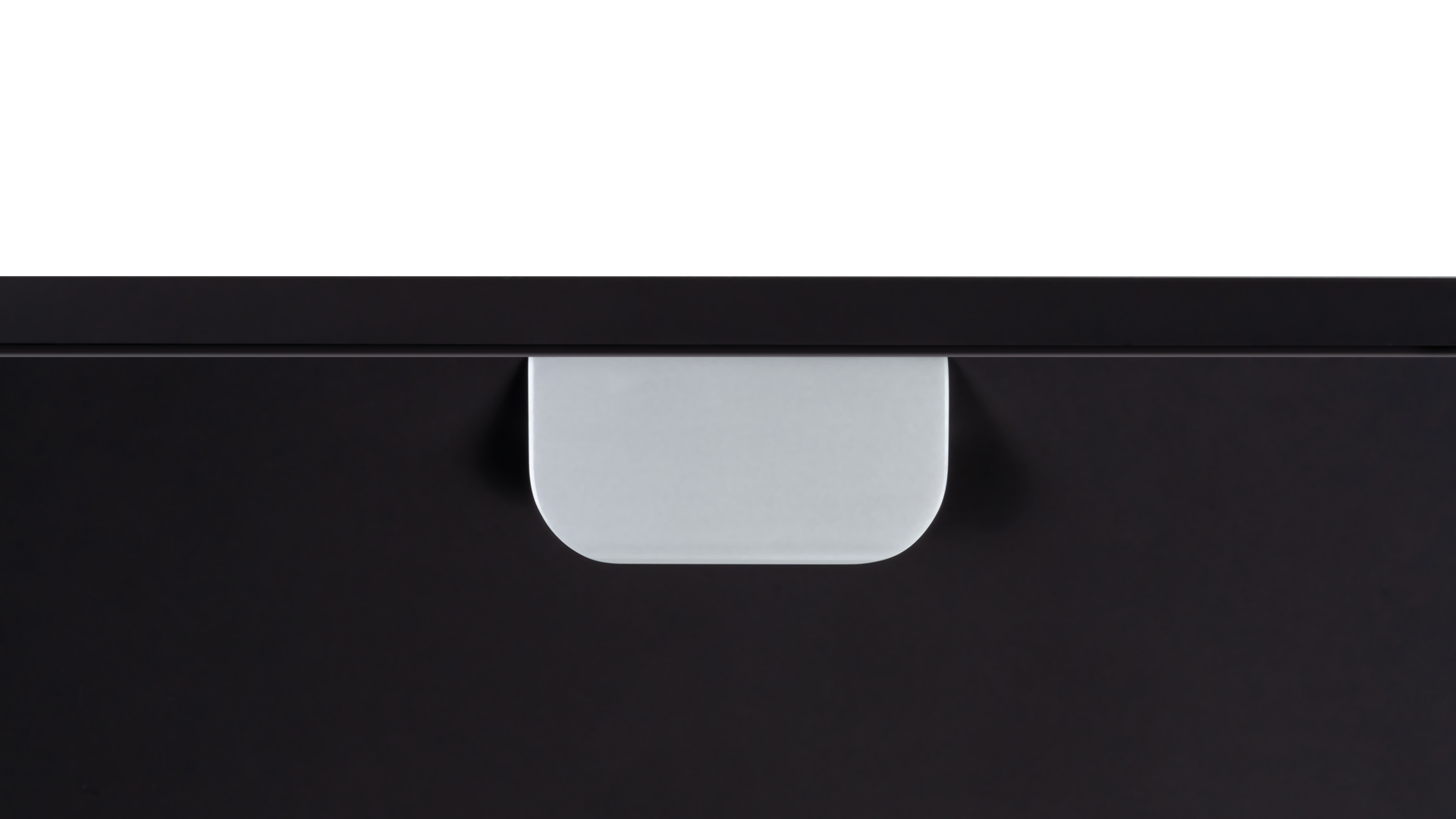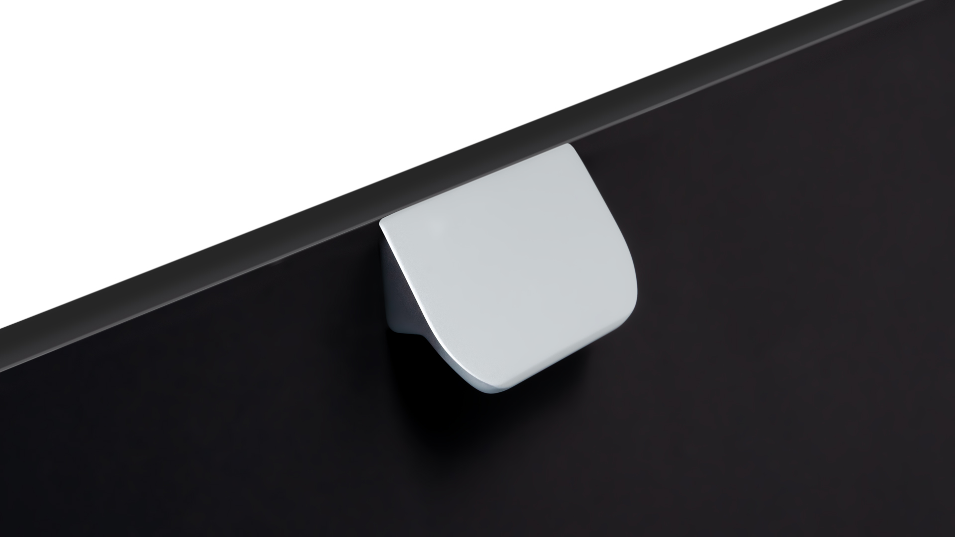 Форма модели позволяет расположить её в край или по центру фасада, креплением горизонтально, а также вертикально у левого и правого торца фасада. Конструкция ручки с острыми краями плотно прижимается к поверхности фасада, создавая эффект естественного продолжения.
