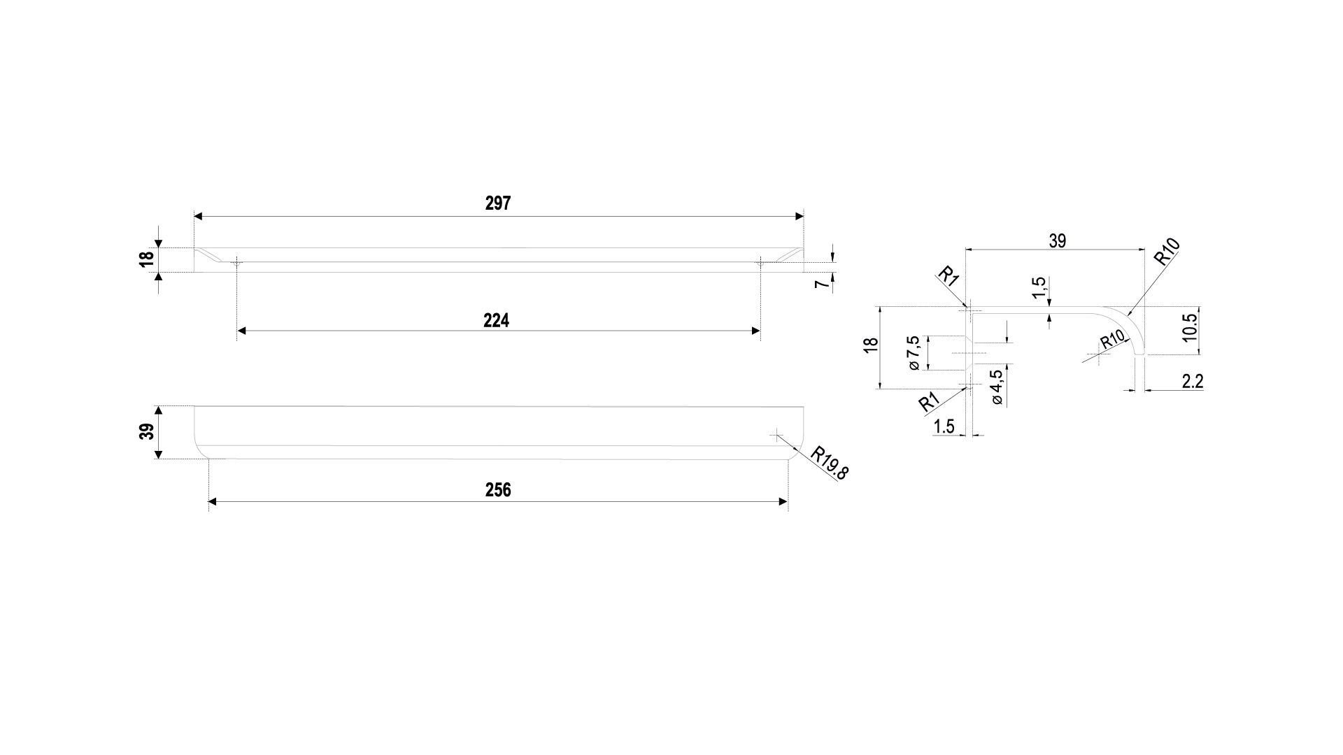 RT110 подходит для установки на фасады толщиной до 18 мм и крепится накладным способом, что значительно облегчает установку и не требует дополнительной работы с торцом.