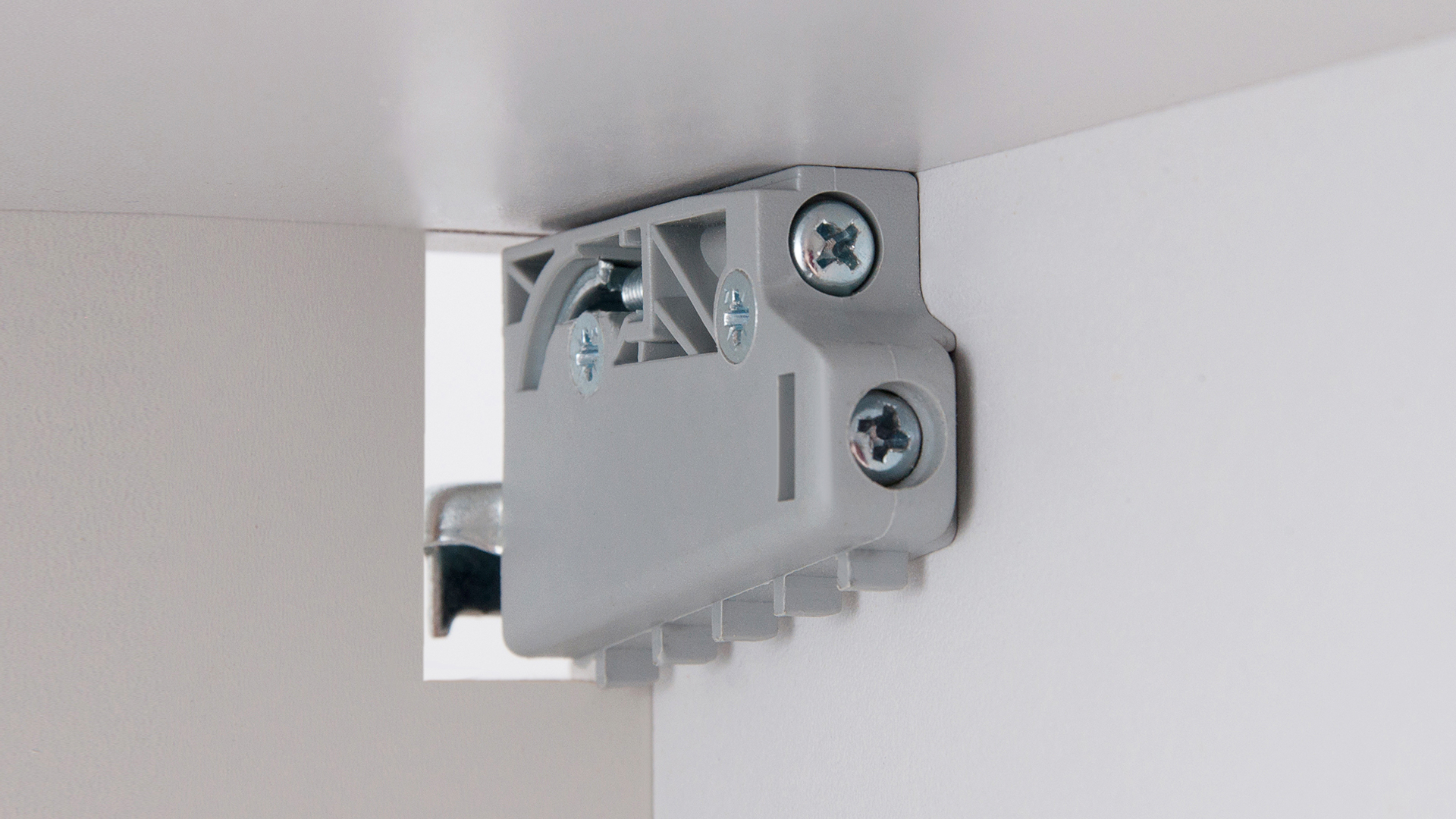 СН04 — классический крепёжный элемент для верхних баз мебели. Навес выдерживает нагрузку на пару до 80 кг и допускает возможность регулировки по вертикали +7 мм и по горизонтали от плоскости стены +20 мм. Модель монтируется внутрь мебельного модуля, в задней стенке которого делается отверстие для крючка. Крючок фиксируется к стене с помощью ответной планки СНН01 (продаётся отдельно). Для внутренней эстетики корпуса навес и вырез в задней стенке закрывается декоративной заглушкой, которая поставляется в комплекте.